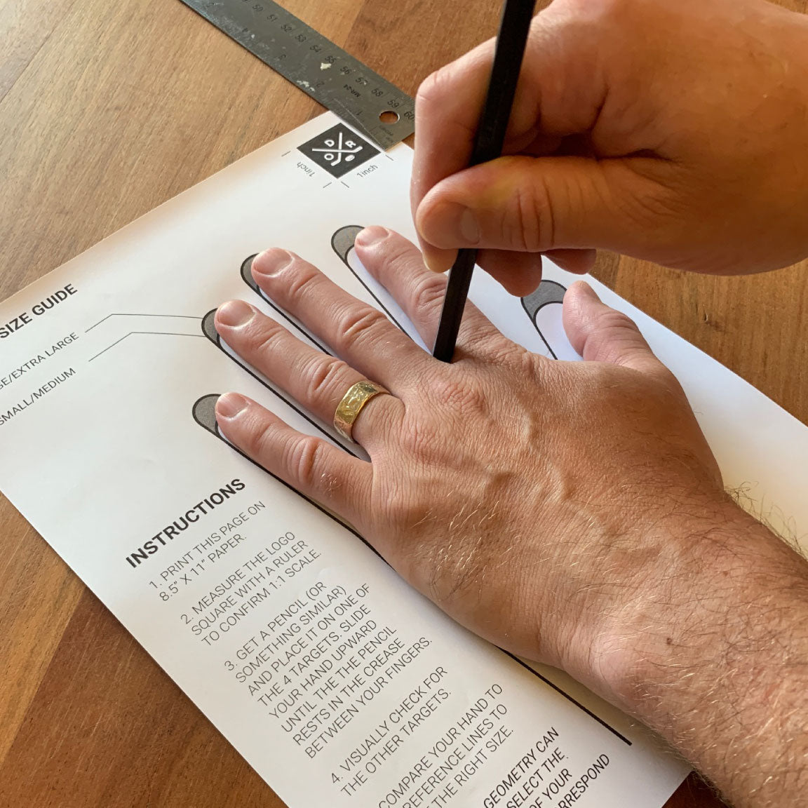 Our gloves are sized just like a typical hockey glove. Medium fits like a standard 14" glove and the Large fits like a standard 15" glove. Choose a size up if you run cold and plan on using the liners inside the gloves. Download and print our size chart to confirm.